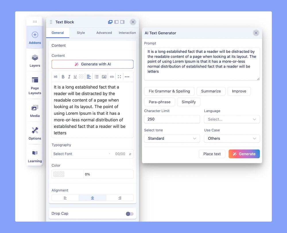 With AI-generated text at your disposal, you can refine, summarize, paraphrase, simplify, or regenerate it to your liking.