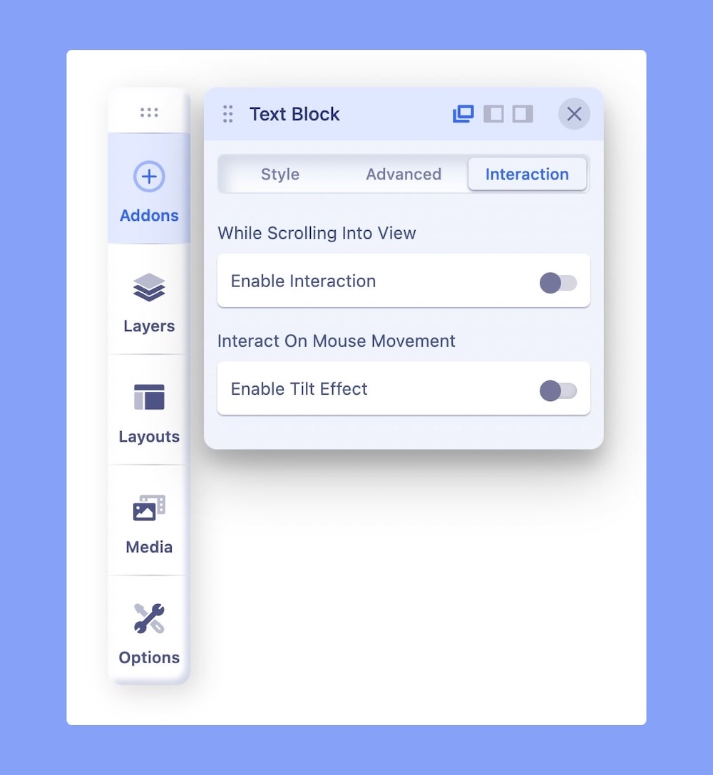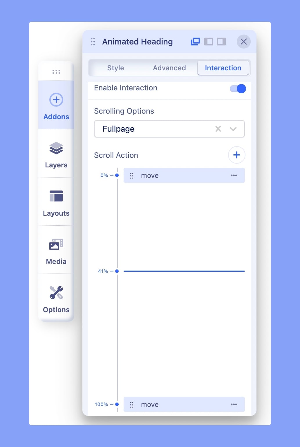 Addon Interaction lets you (as a web developer) unleash your creativity, and makes you do crazy stuff. With interaction in SP Page Builder, you have a whole new way to create live motion effects on your site. It has a set of powerful controls that lets you add attractive transitions and beautiful animations. All Addon offers two kinds of interaction options: