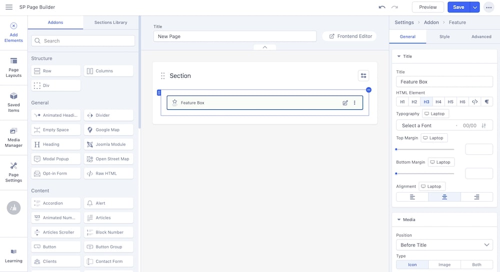 Click on any existing page to access the backend editor of that page. Or you can hit “+ New Page” to create a new page. Once you create a new page, it will directly take you to the backend editor of SP Page Builder.