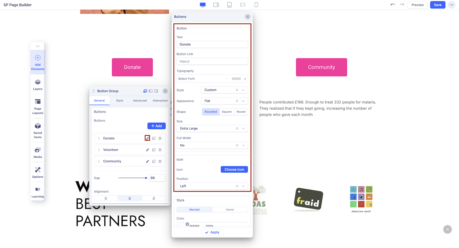 Button Icon Position: Where do you want the icon left or right? Select your desired position.