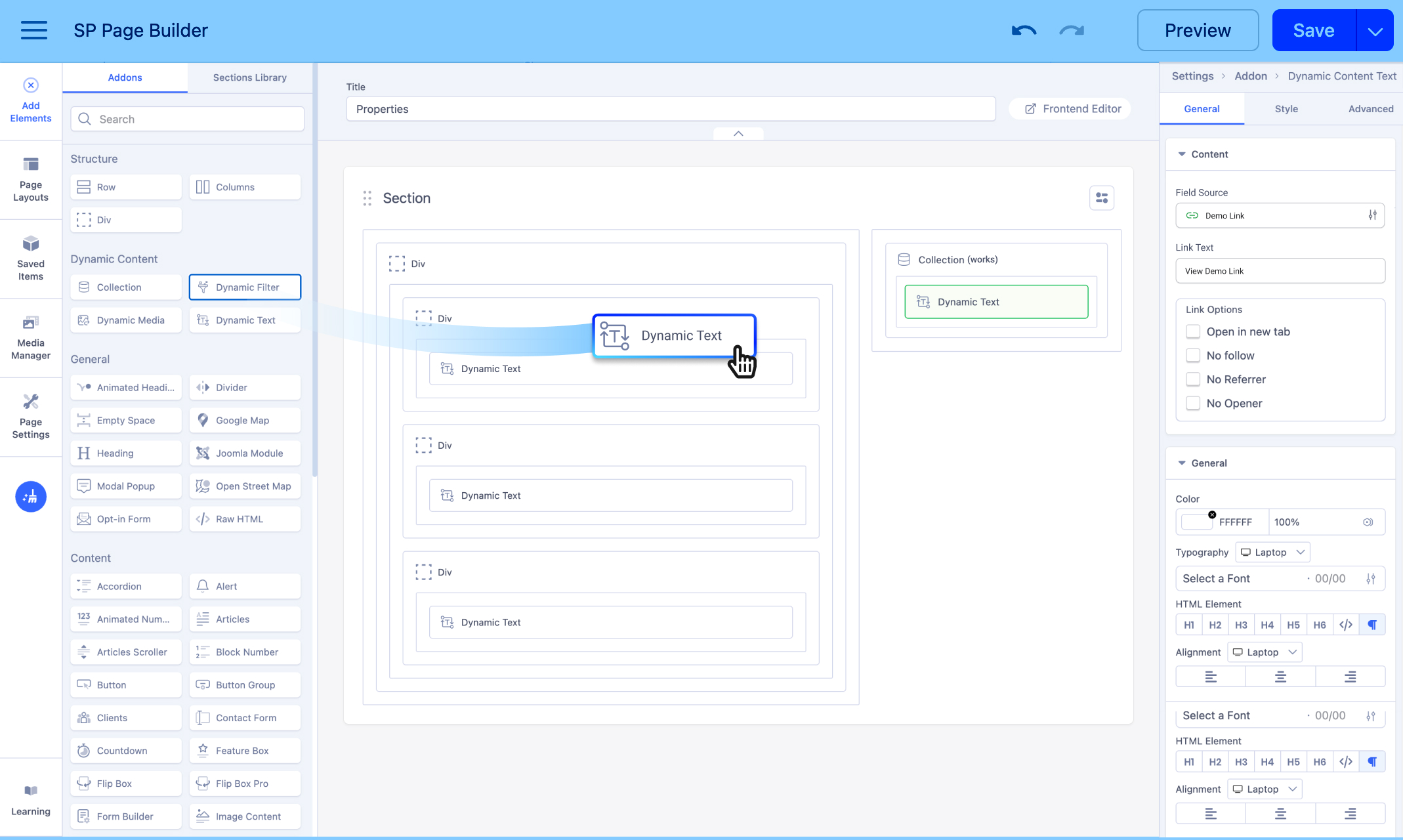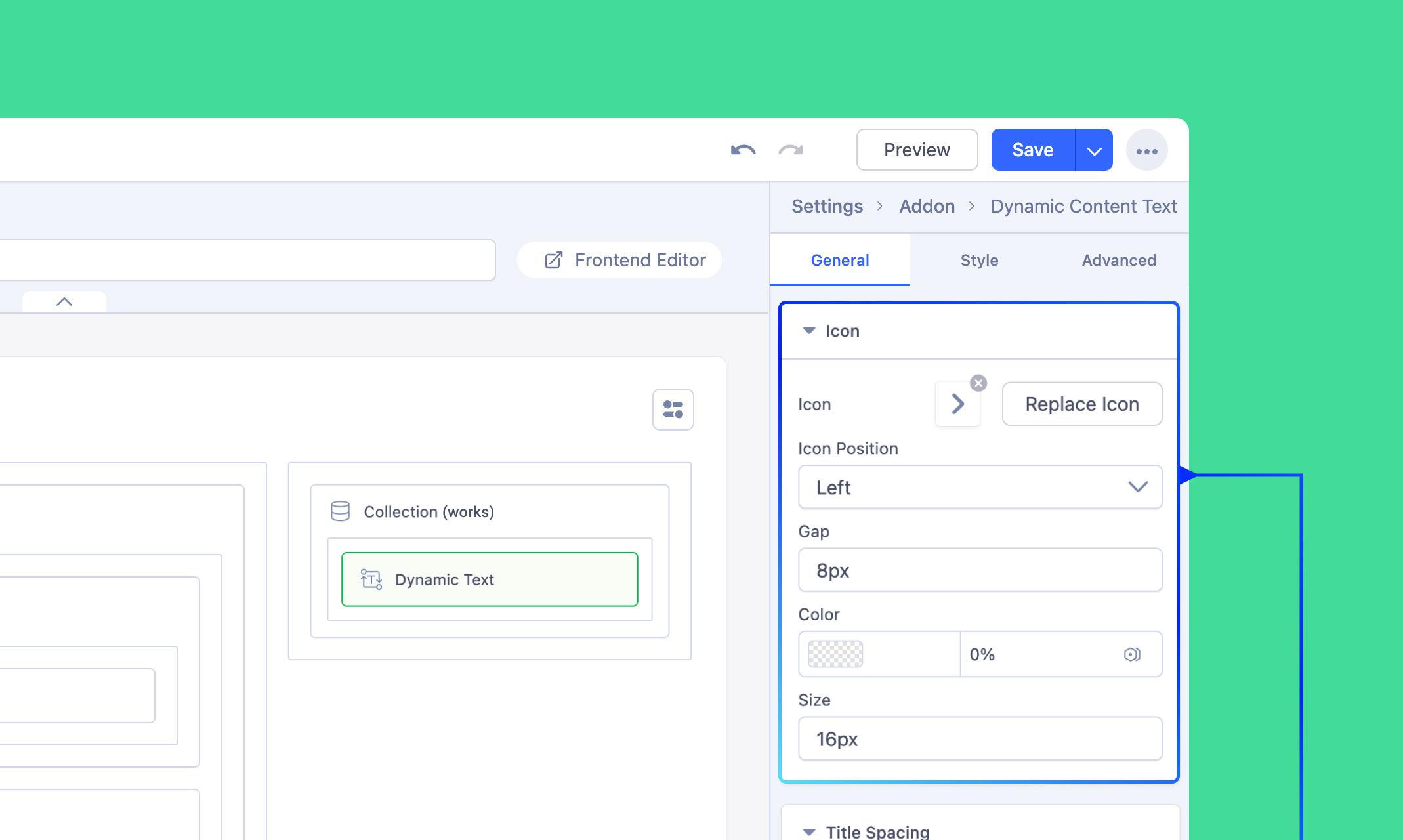5. Inside the Dynamic Collection addon, drag and drop a Dynamic Text addon.