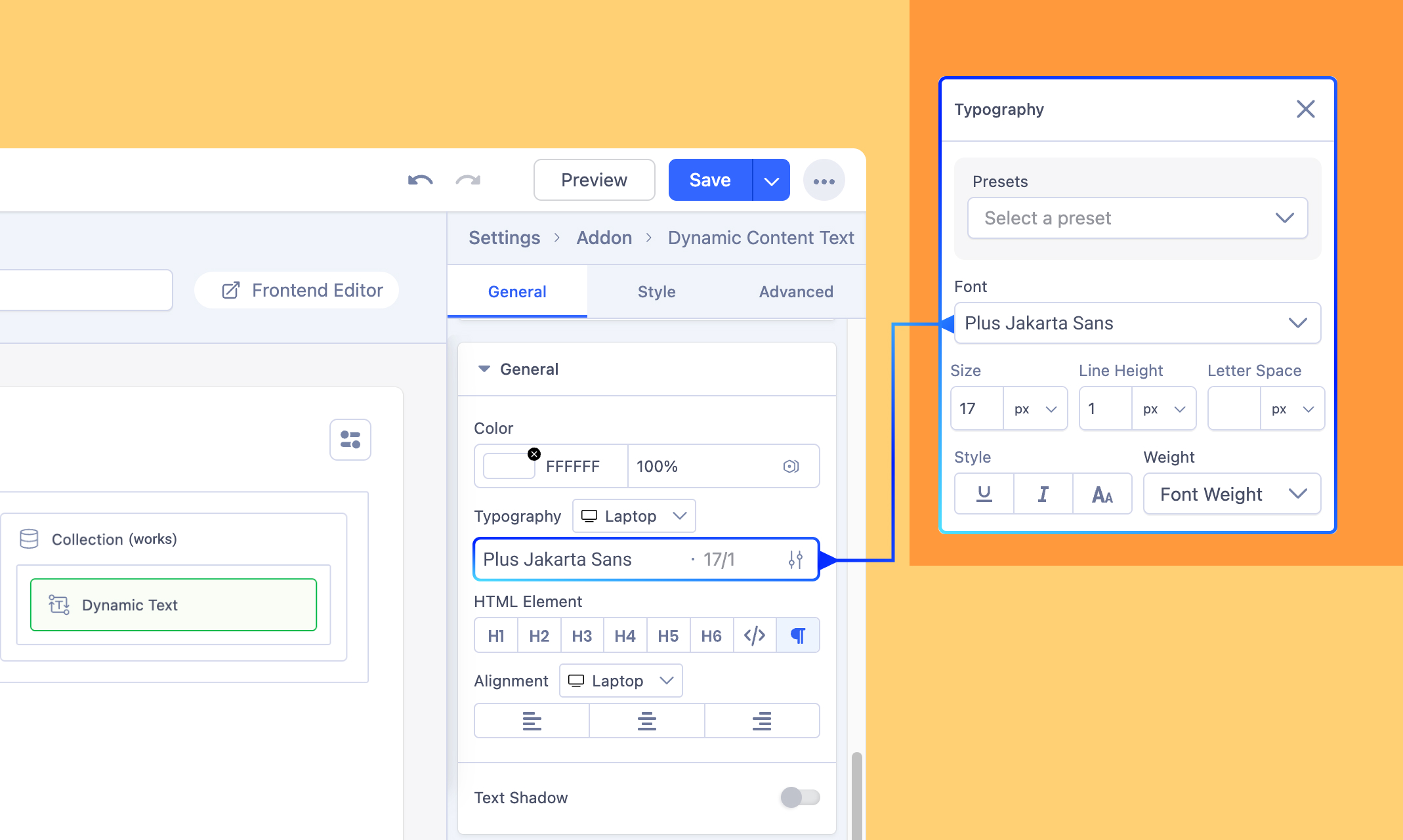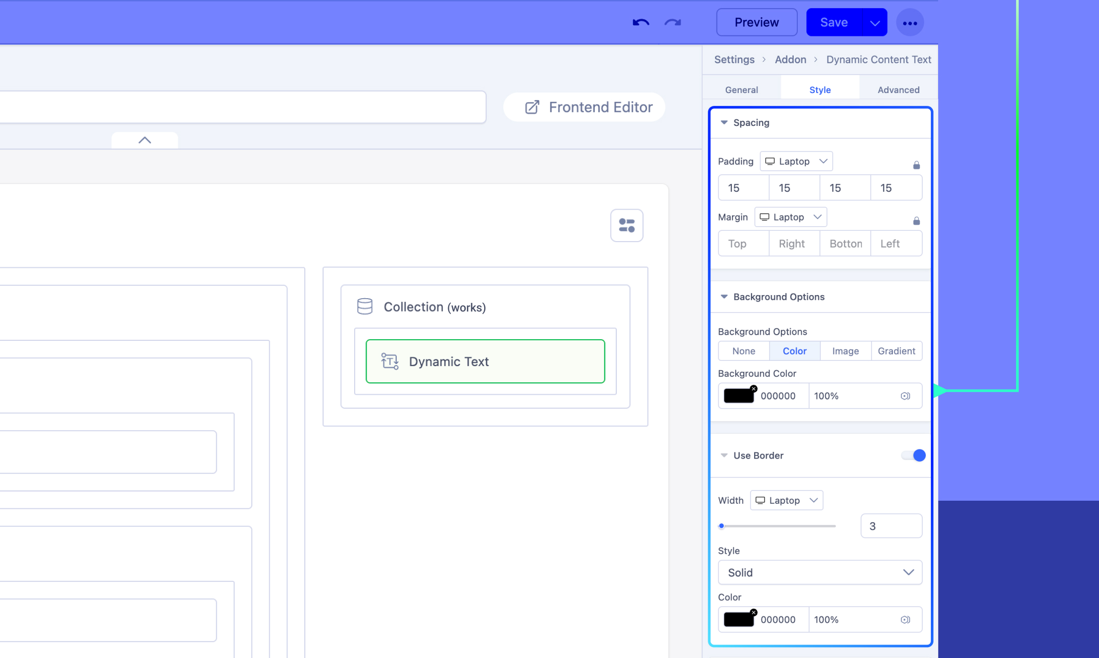Note: If you're using a Dynamic Content page, you can simply add a Dynamic Text addon without using the Dynamic Collection addon. In that case, it will display the source fields linked to that specific dynamic page.