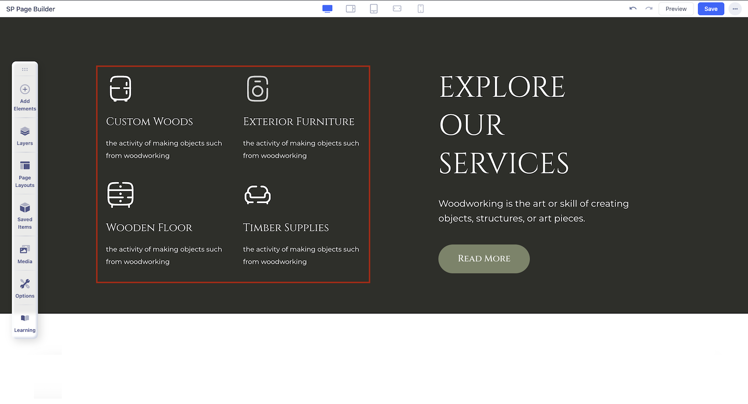 Feature Box addon lets you display your features, tag messages, or something with a good title, content display, and focused elements. The SP Page Builder Pro feature box will display your featured content in the most concentrated way for maximum exposure.