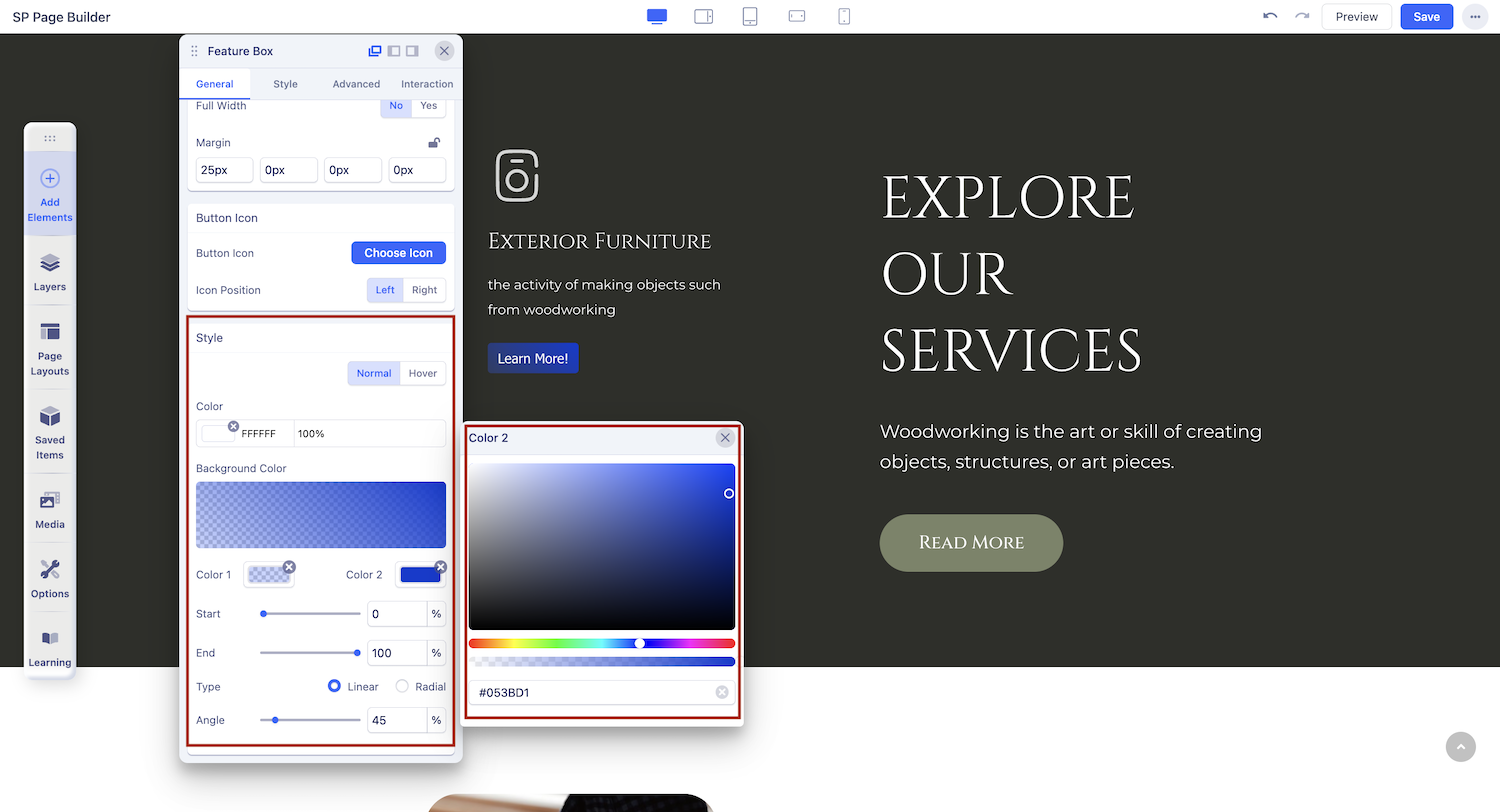 When you click on the Feature Box addon, the addon settings will open up. You can access the Feature Box settings and customize the addon to fit your needs.