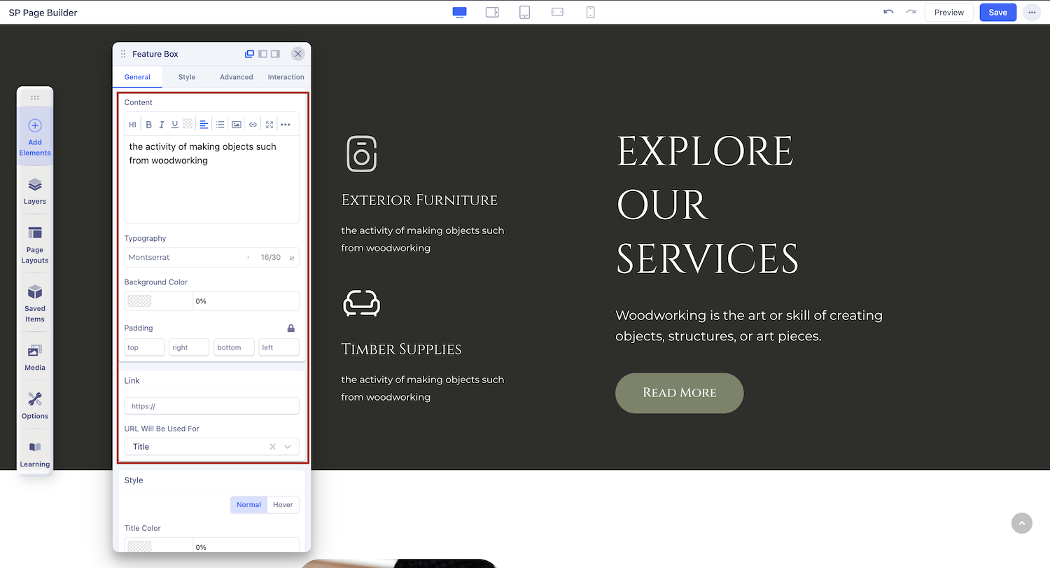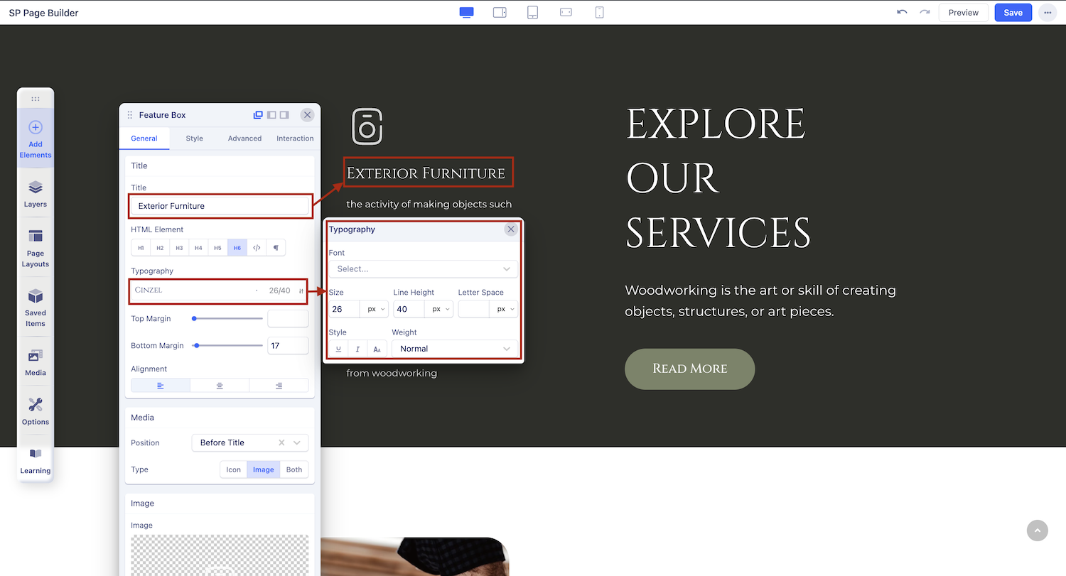 Typography: Customize the font, size, and other text styles for your feature box title in this section.