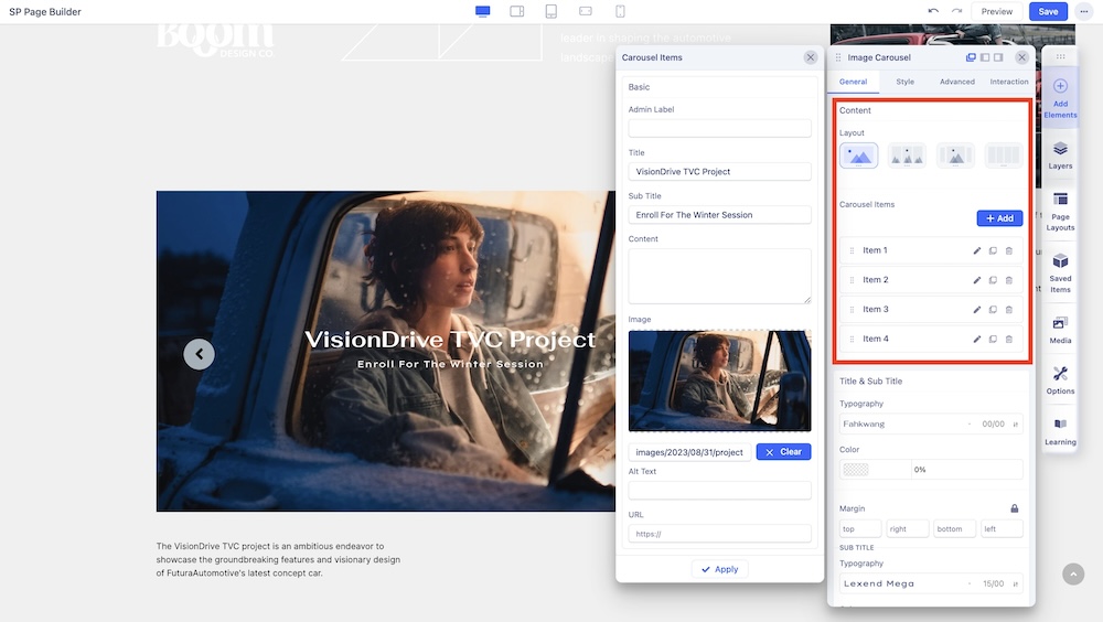 Sub Title: Use the text field to add a subtitle to define the carousel item.