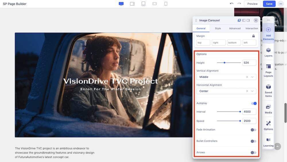 Vertical Alignment: Set the vertical alignment of the carousel to the top, bottom, or middle.
