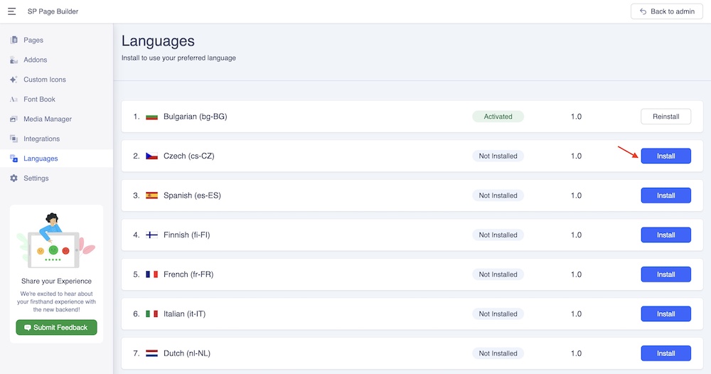 To do that, go to SP Page Builder Dashboard>Languages.