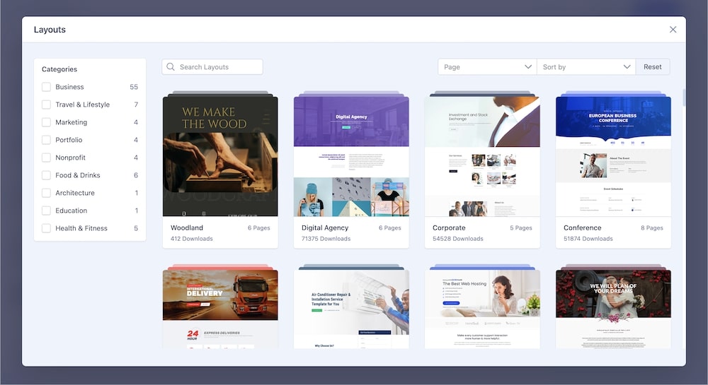 To narrow down your search and quickly find the layout bundle that suits you the best you can utilize the newly added filters. Sort through the huge range of our Layout Bundles using the filters like “Pages” and “Sort by.” For detailed documentation on Page layouts, check here.