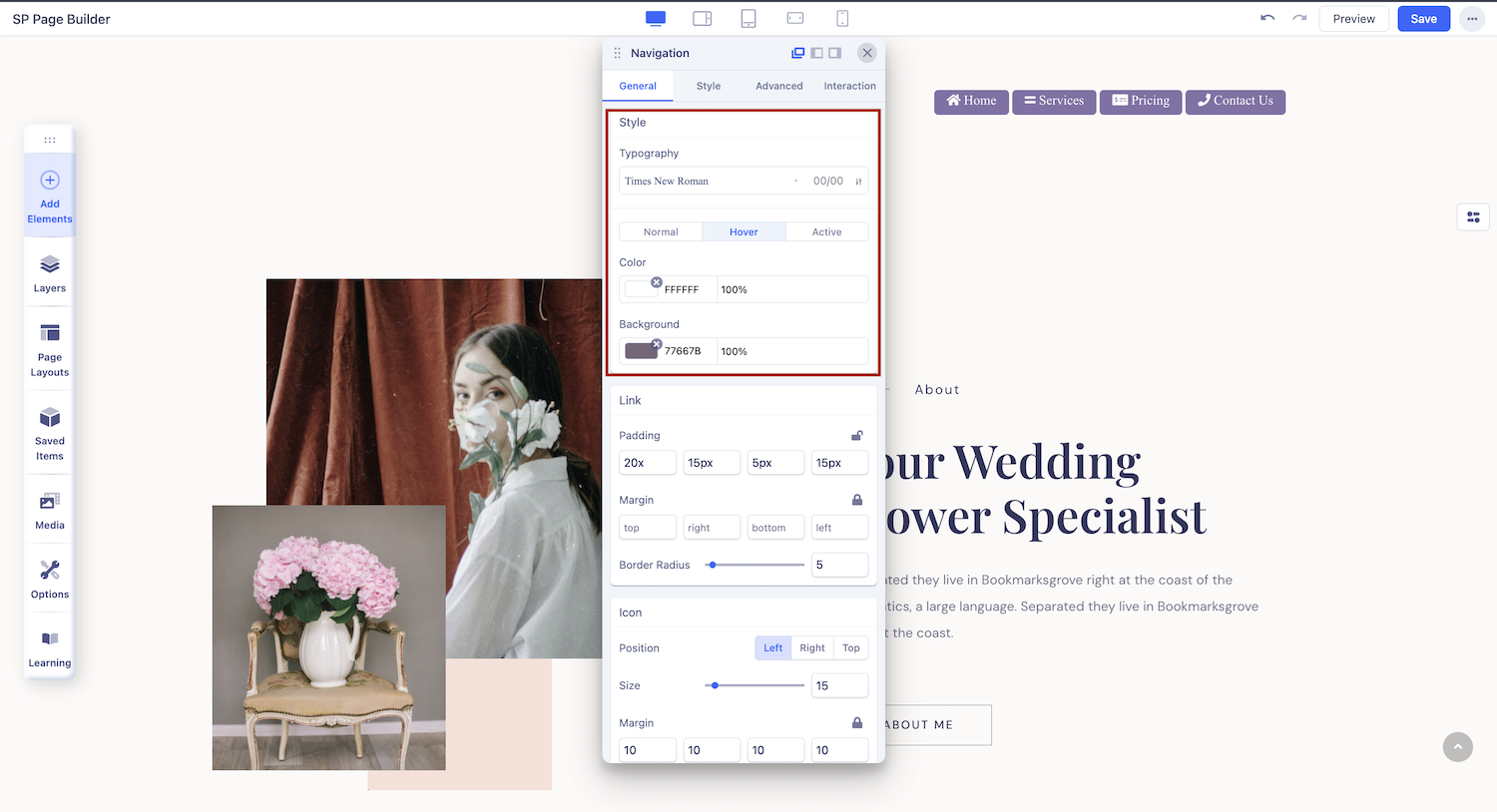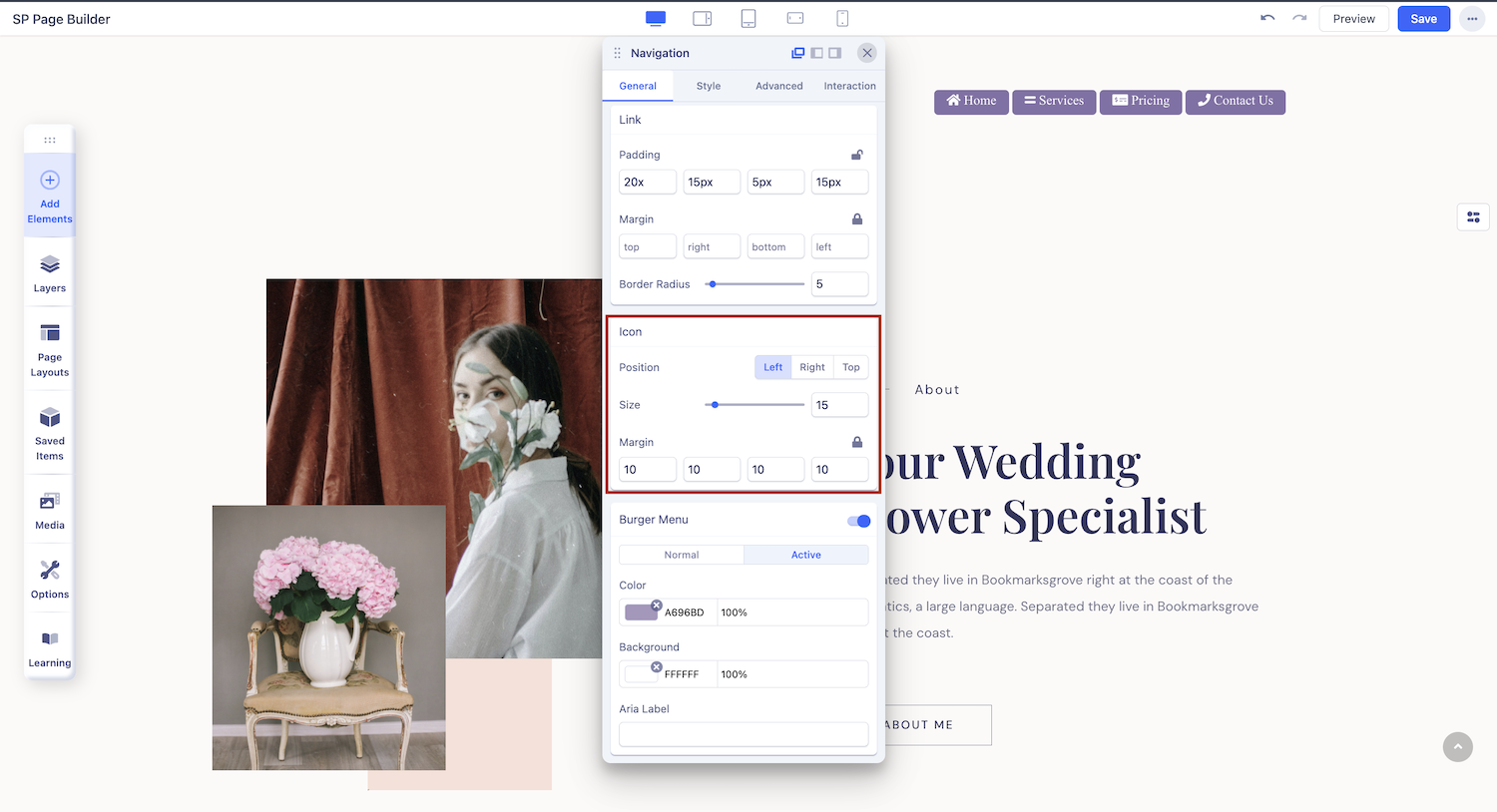 When you click on the Navigation, the addon settings panel will open up from where you can customize it to fit your needs.