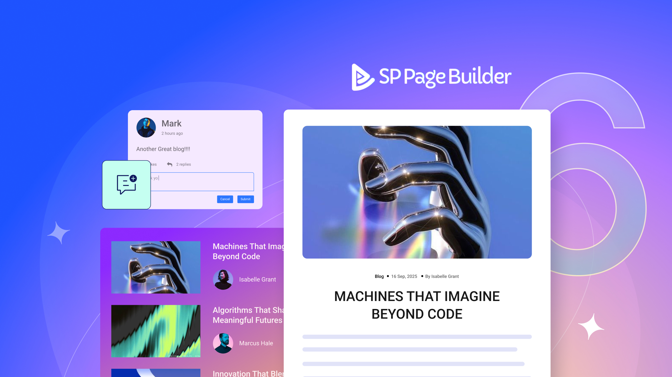 Beautifully Customizable Design your comments section your way. Place it anywhere, style it to match your brand, and customize every detail directly inside SP Page Builder. No restrictions, no compromises.