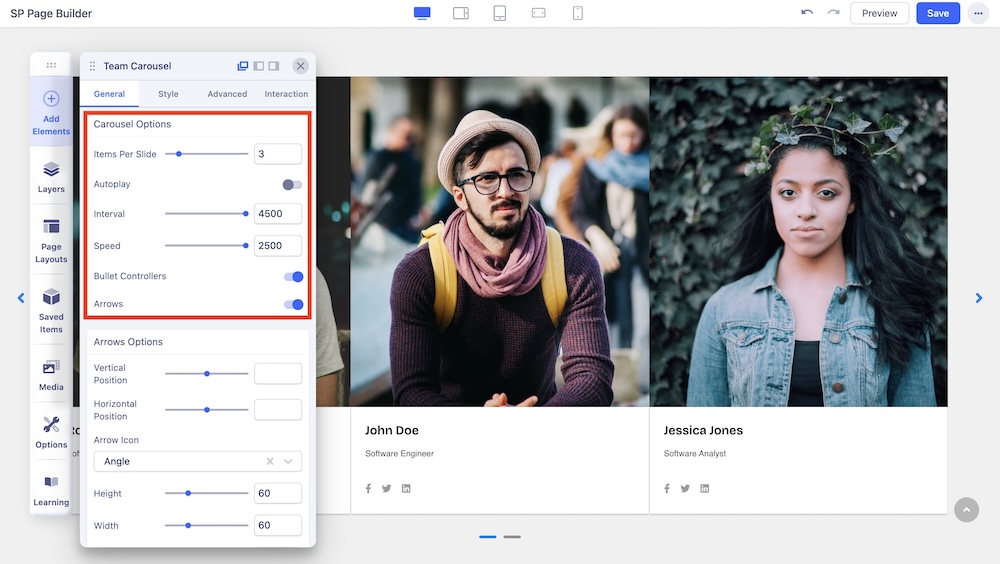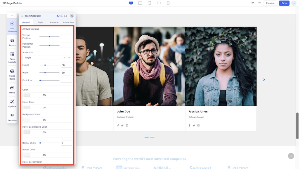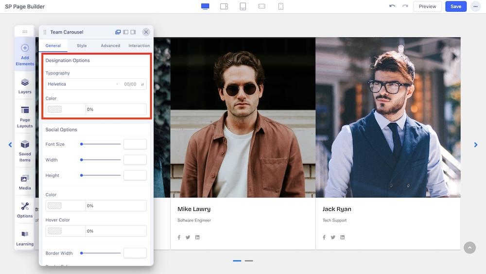 SP Page Builder’s Team Carousel addon will let you display your team members smartly on your website. It will help you create a gorgeous team member slider easily. You can take full control over the carousel design with easy settings.