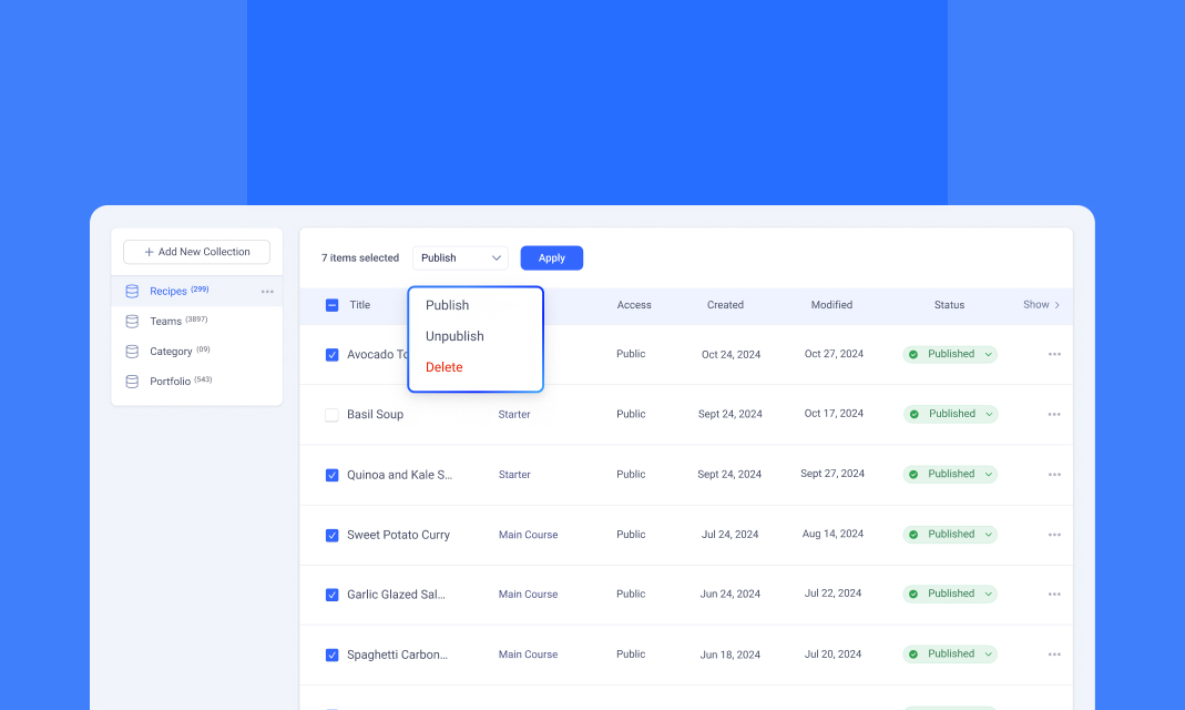 Once you’ve created a Collection, the next step is to populate it with Collection Items. These items contain the actual data that will be displayed dynamically on your site. Efficiently managing your collection items ensures your content stays organized, up-to-date, and easy to retrieve.