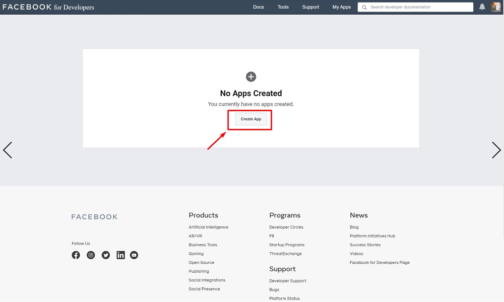 Create a new app with App Type set as "None". The next step involves creating a Facebook App that will give the functionality to create an Instagram feed in Joomla. Head over to https://developers.facebook.com/apps to create an app for developers. The app creation process will guide you through all the settings.