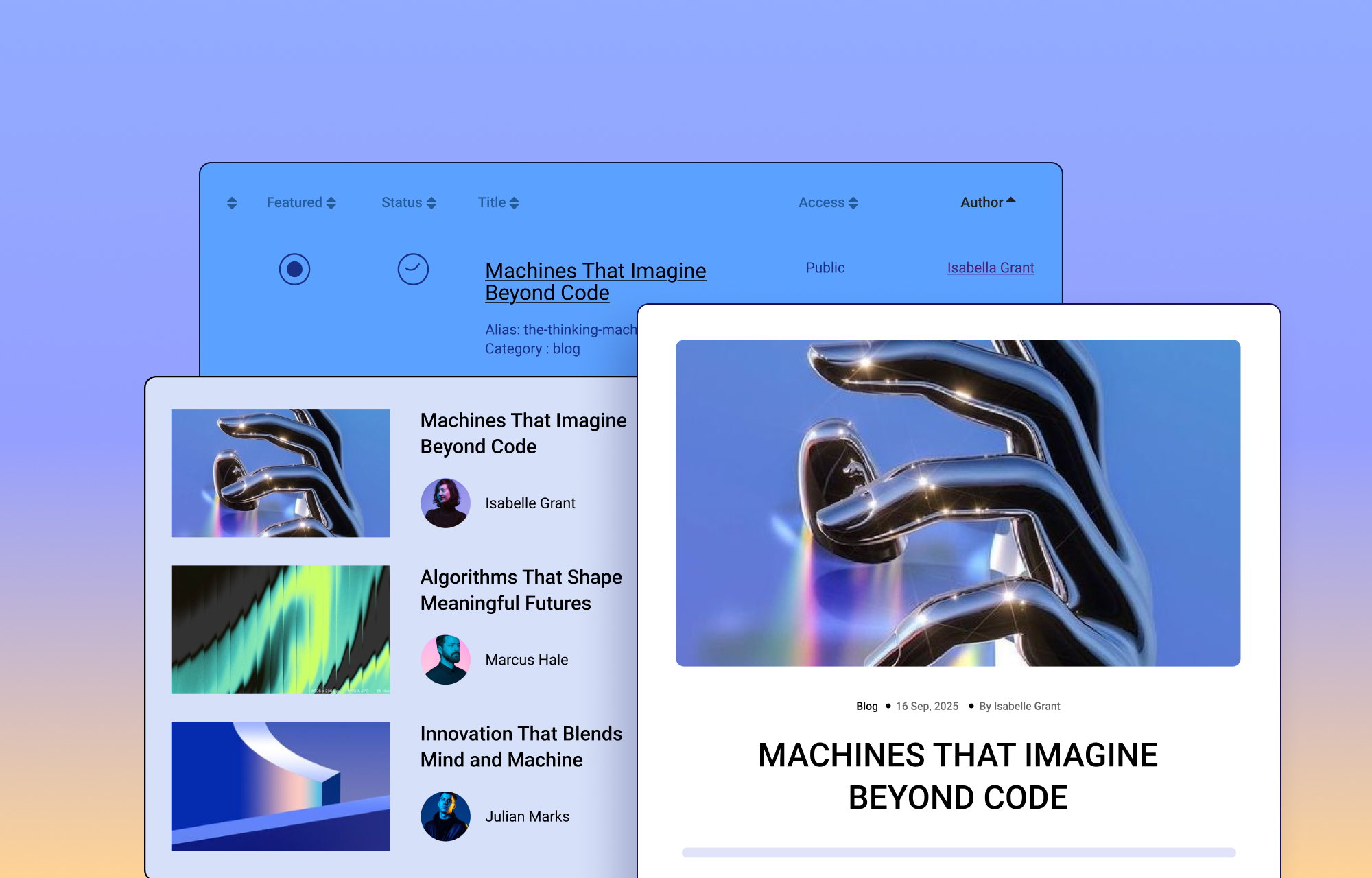Dynamic Article Detail Page: Let each article shine with full content, visuals, author info, and even related articles.