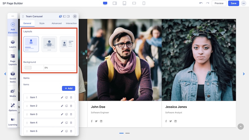 SP Page Builder’s Team Carousel addon will let you display your team members smartly on your website. It will help you create a gorgeous team member slider easily. You can take full control over the carousel design with easy settings.
